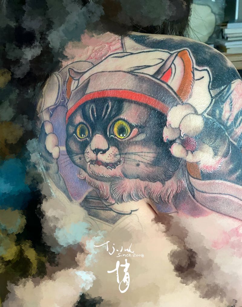 遮盖作品【四福神】纹身图片_背部肩部新传统刺青师倩纹身图案