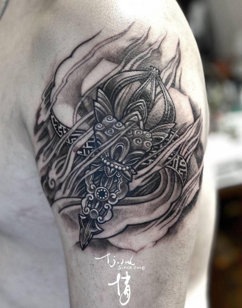 杵纹身图片_手臂新传统东方神秘纹身图案