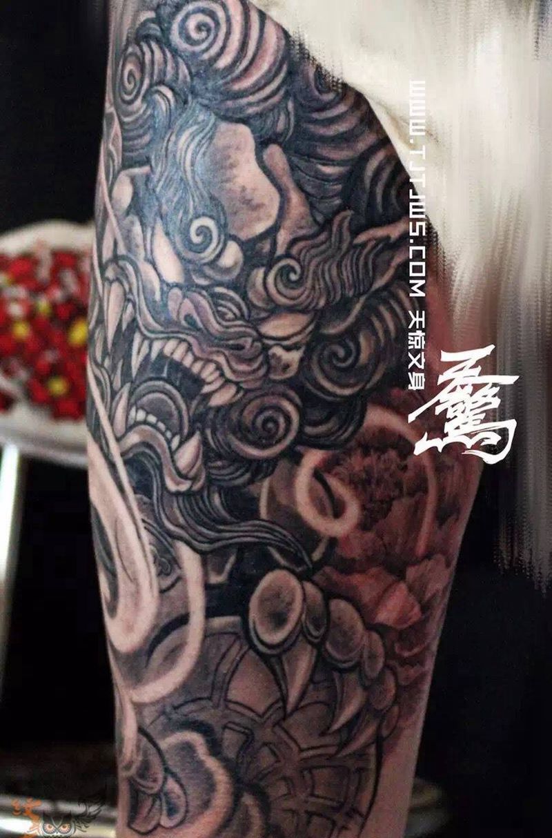 当前位置: 首页 >天津市纹身店-天惊文道刺青艺术馆纹身图案>唐狮子纹身图片_传统动物原创腿部纹身图案