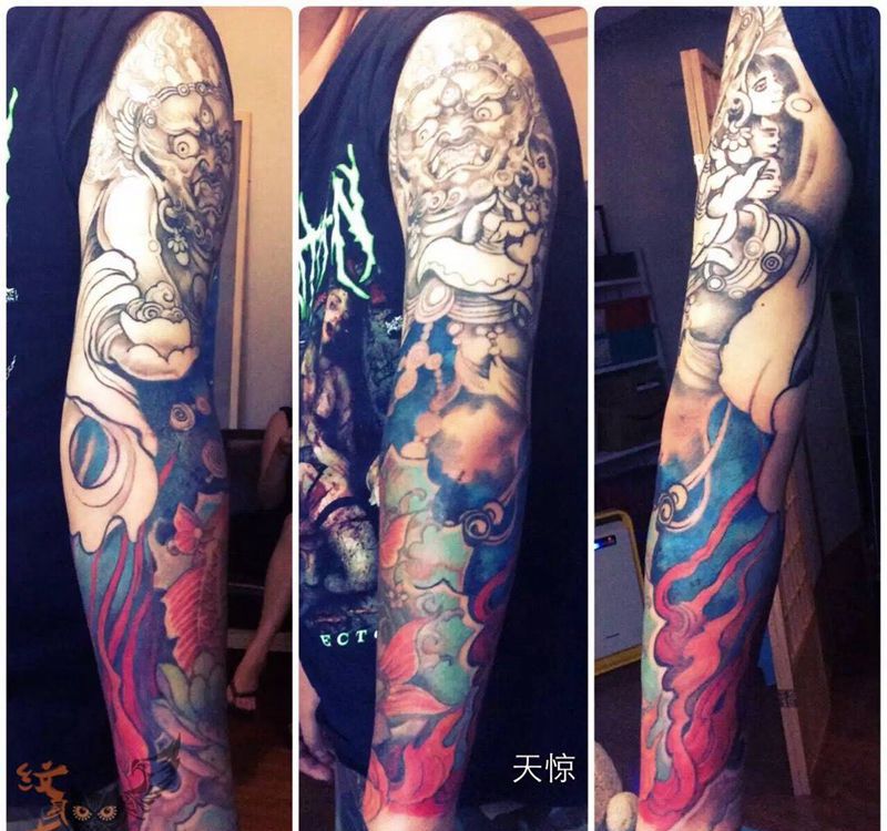 当前位置: 首页 >天津市纹身店-天惊文道刺青艺术馆纹身图案>大黑天花臂纹身图片_