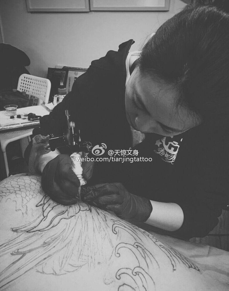 当前位置: 首页 >天津市纹身店-天惊文道刺青艺术馆纹身图案>首席文身师工作中纹身图片_原创传统成品人物纹身图案