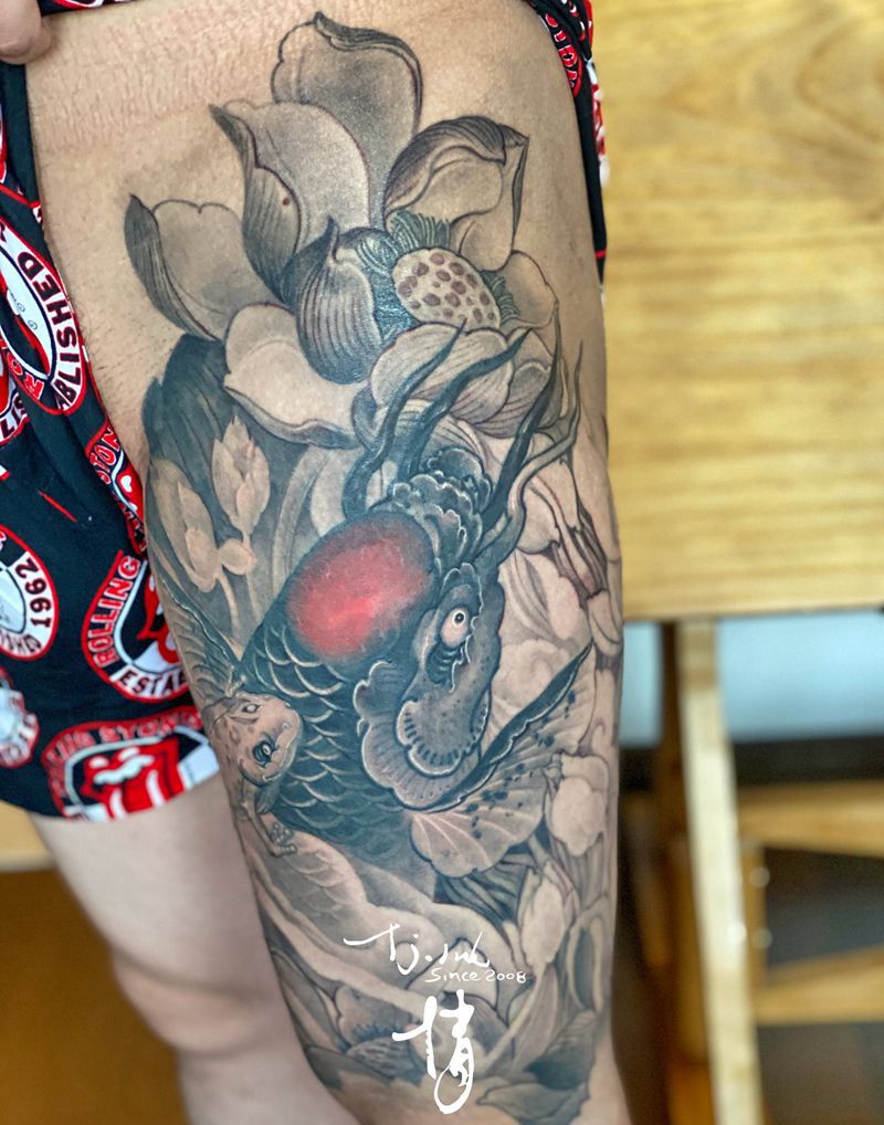 当前位置: 首页 >天津市纹身店-天惊文道刺青艺术馆纹身图案>鱼蛙满堂合纹身图片_腿部新传统刺青师倩东方神秘纹身图案