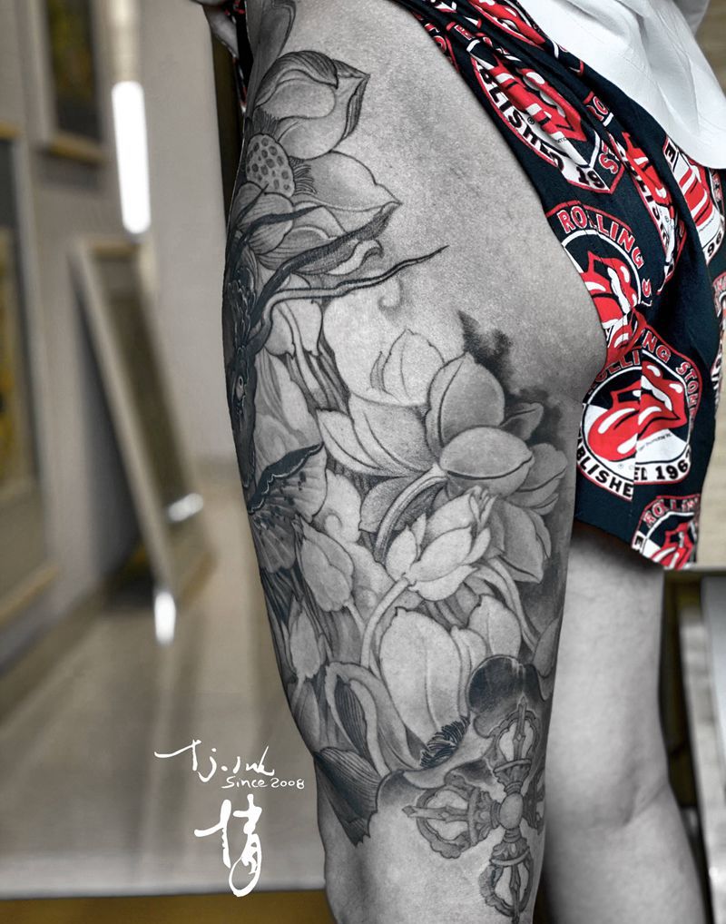 一组15张莲花纹身手