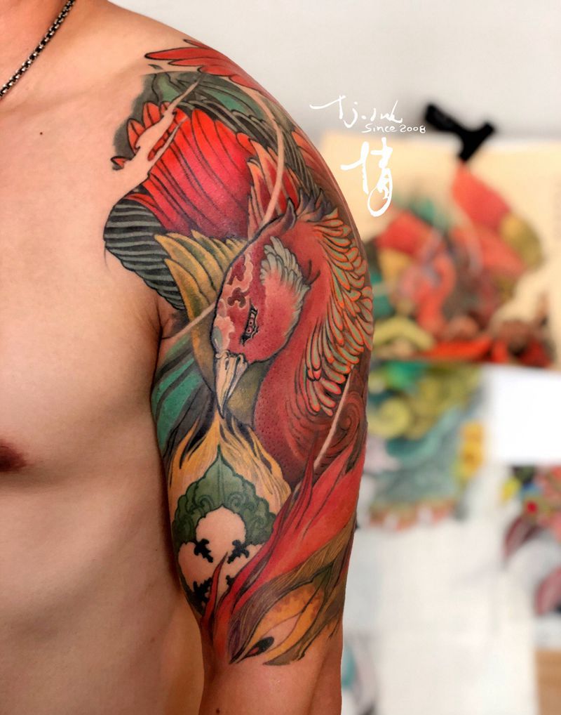 当前位置: 首页 >天津市纹身店-天惊文道刺青艺术馆纹身图案>重明鸟纹身图片_肩部手臂新传统刺青师倩东方神秘纹身图案