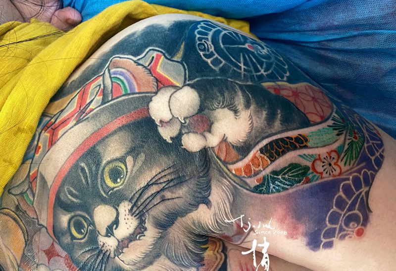 当前位置: 首页 >天津市纹身店-天惊文道刺青艺术馆纹身图案>遮盖纹身图片_肩部背部新传统东方神秘纹身图案