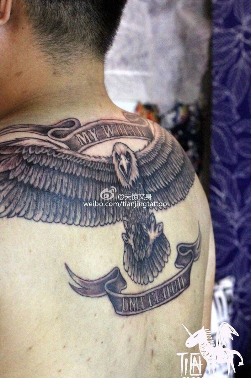 当前位置: 首页 >天津市纹身店-天惊文道刺青艺术馆纹身图案>白头鹰飞纹身图片_成品背部写实欧美动物原创纹身图案