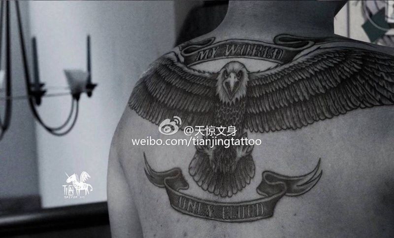 当前位置: 首页 >天津市纹身店-天惊文道刺青艺术馆纹身图案>白头鹰飞纹身图片_成品背部写实欧美动物原创纹身图案