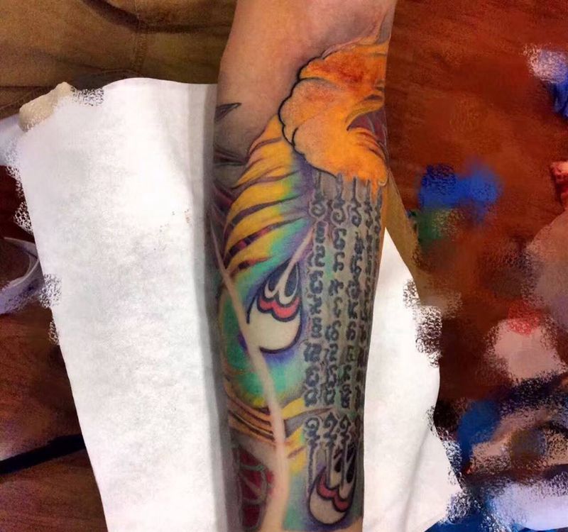 当前位置: 首页 >天津市纹身店-天惊文道刺青艺术馆纹身图案>凤舞夕间纹身图片_成品手臂传统动物原创纹身图案
