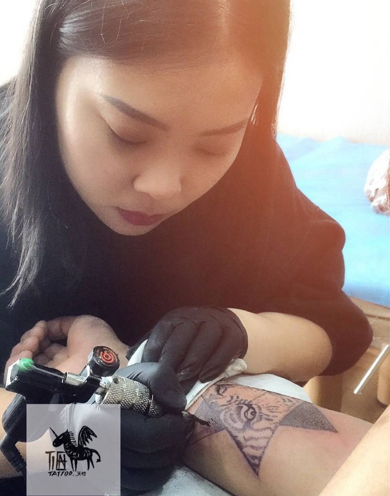 当前位置: 首页 >天津市纹身店-天惊文道刺青艺术馆纹身图案>点刺 老虎纹身图片_成品手臂欧美清新动物图腾原创纹身图案