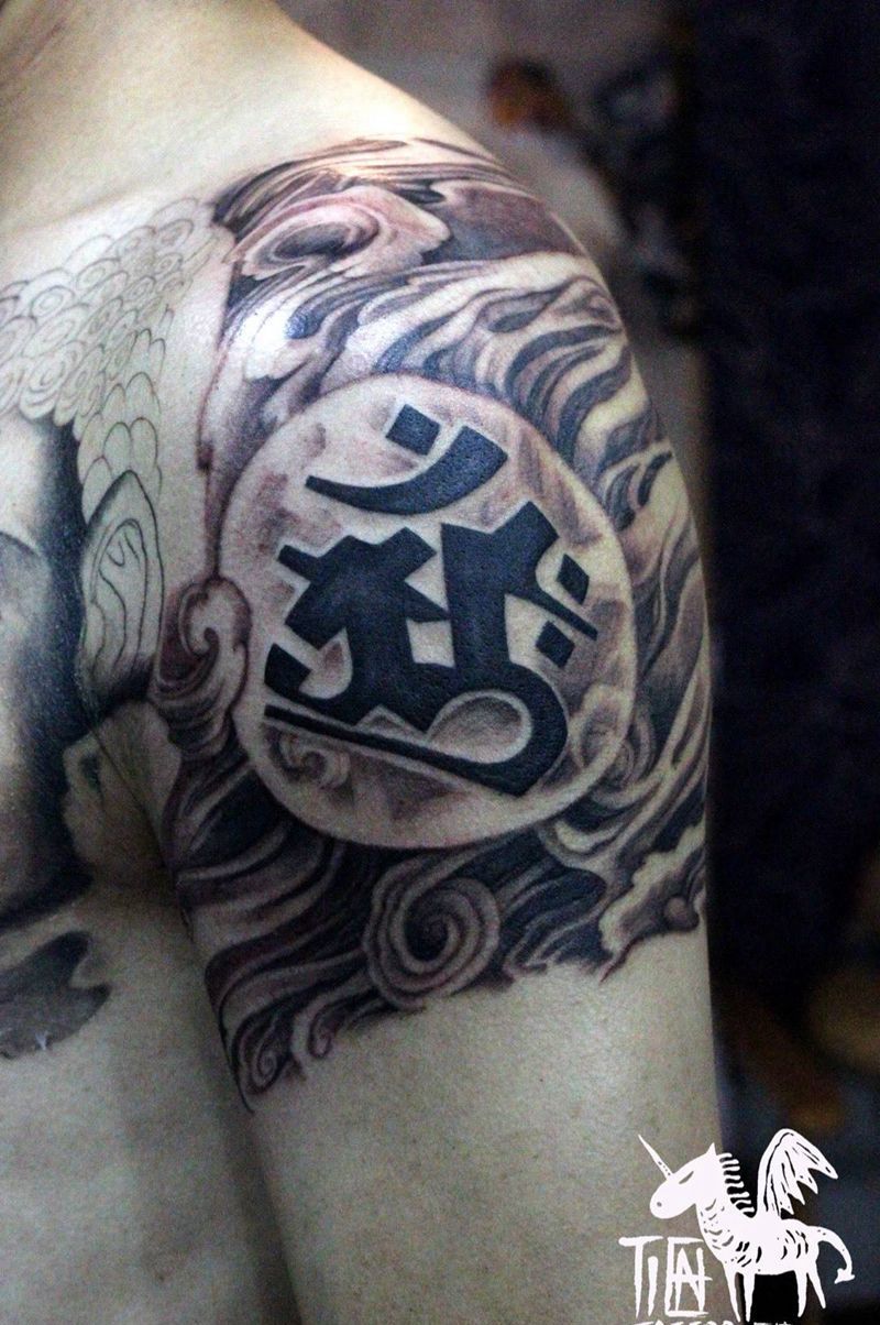 当前位置: 首页 >天津市纹身店-天惊文道刺青艺术馆纹身图案>无极纹身图片_成品肩部传统字符宗教原创纹身图案