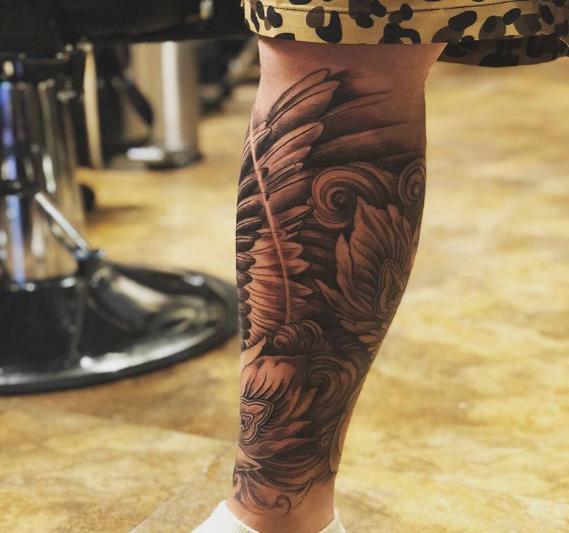 当前位置: 首页 >天津市纹身店-天惊文道刺青艺术馆纹身图案>凤纹身图片_成品腿部传统国画动物凤凰纹身图案