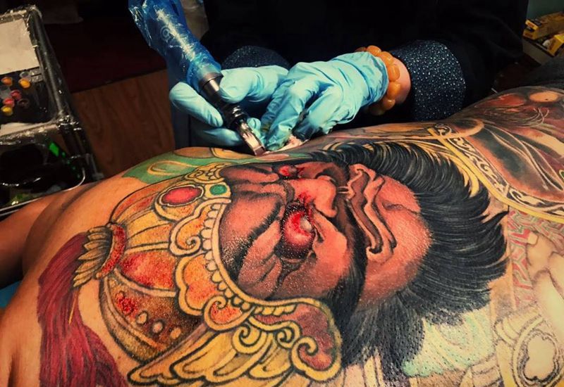 当前位置: 首页 >天津市纹身店-天惊文道刺青艺术馆纹身图案>鸡鸣枕上纹身图片_成品背部传统鬼神原创纹身图案