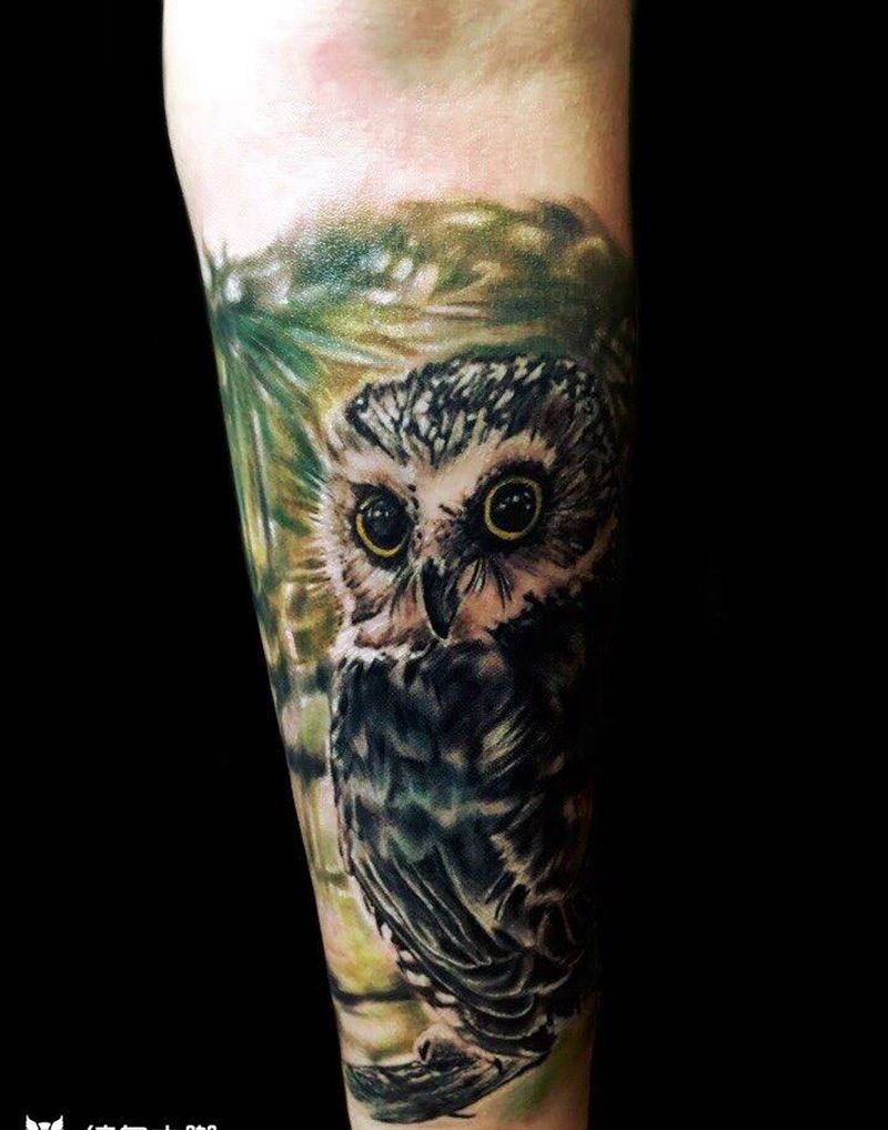 当前位置: 首页 >天津市纹身店-SJTATTOO纹身图案>小猫头鹰纹身图片_欧美写实动物成品手臂纹身图案