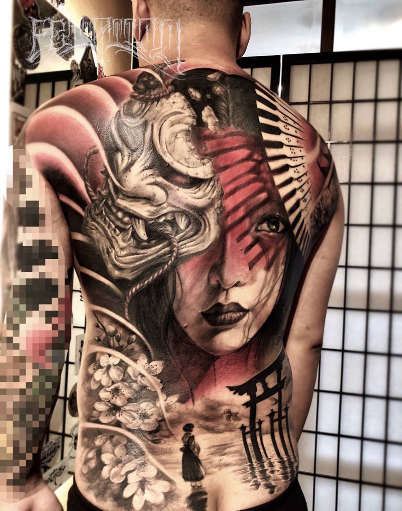 黑灰满背纹身图案