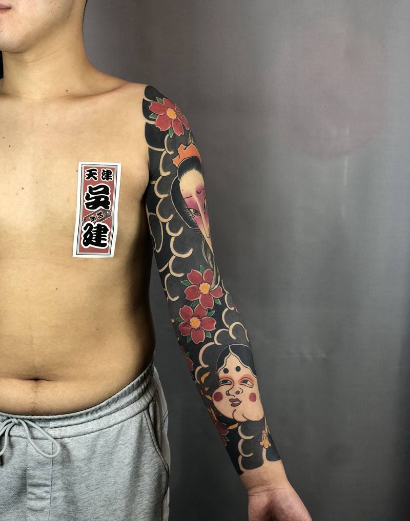 当前位置: 首页 >天津市纹身店-天津吴建刺青纹身图案>生首阿多福花臂纹身图片_手臂老传统纹身图案