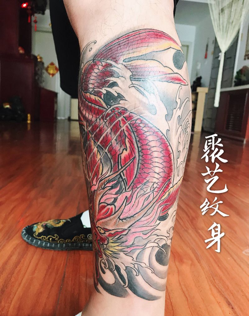 • T网红王老大花腿龙纹身图片_腿部新传统纹身图案