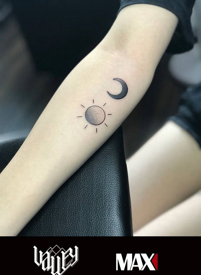 当前位置: 首页 >天津市纹身店-天津山谷刺青纹身图案>太阳月亮纹身图片_成品手臂原创静物图腾欧美清新几何纹身图案