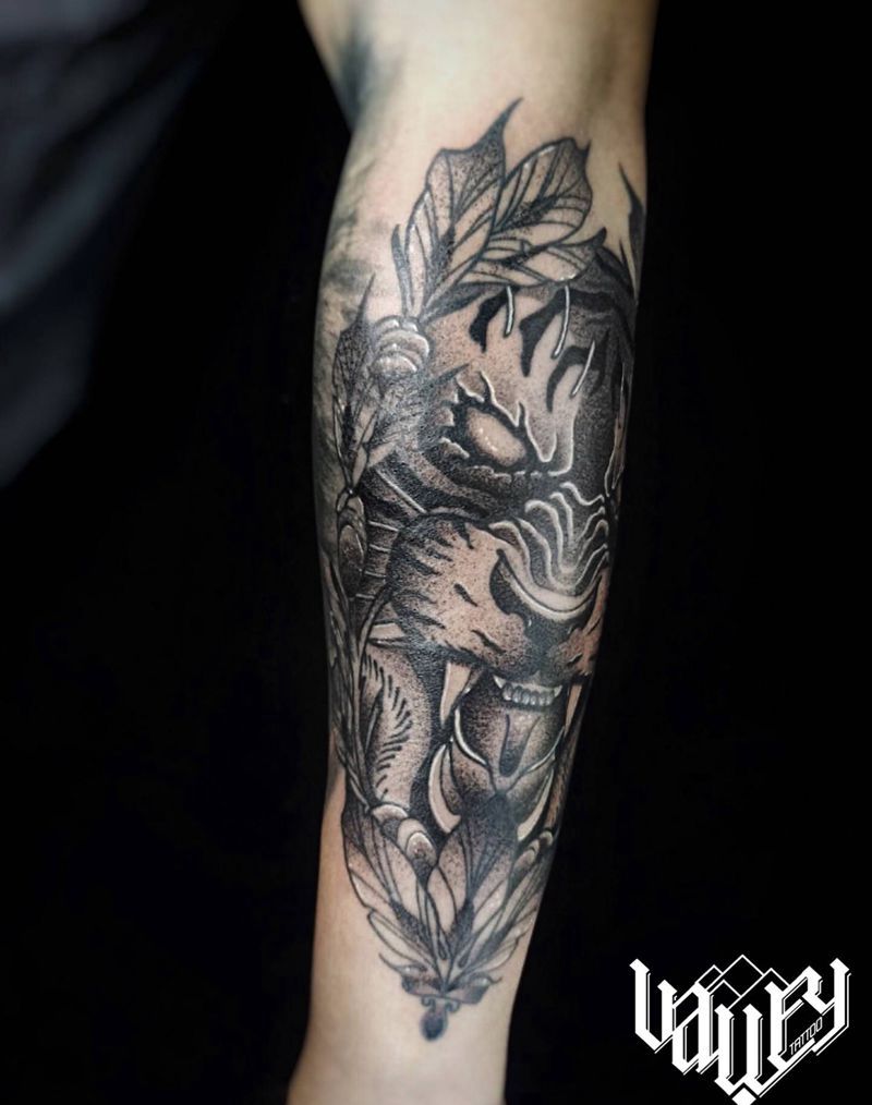 当前位置: 首页 >天津市纹身店-天津山谷刺青纹身图案>老虎纹身图片_手臂胸部新传统水彩暗黑老虎小臂纹身图案