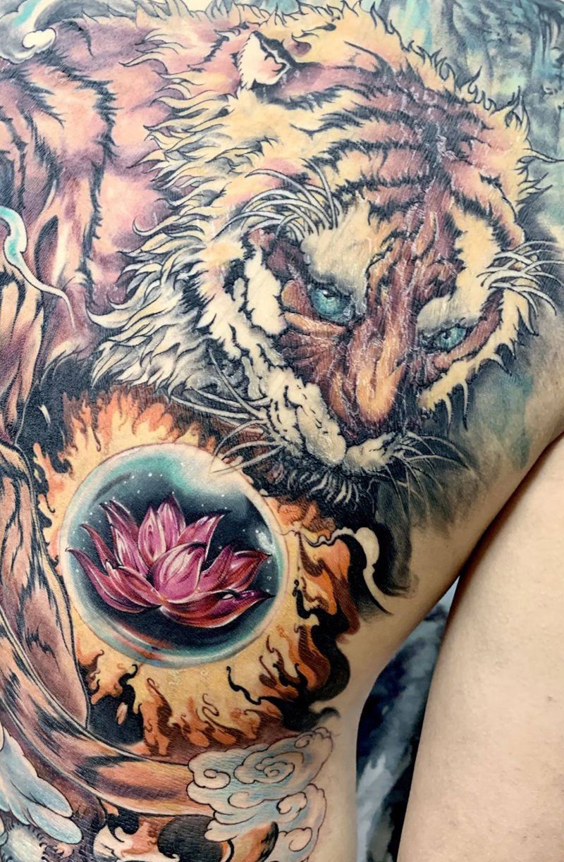 连续四天遮盖虎纹身图片_背部新传统纹身图案