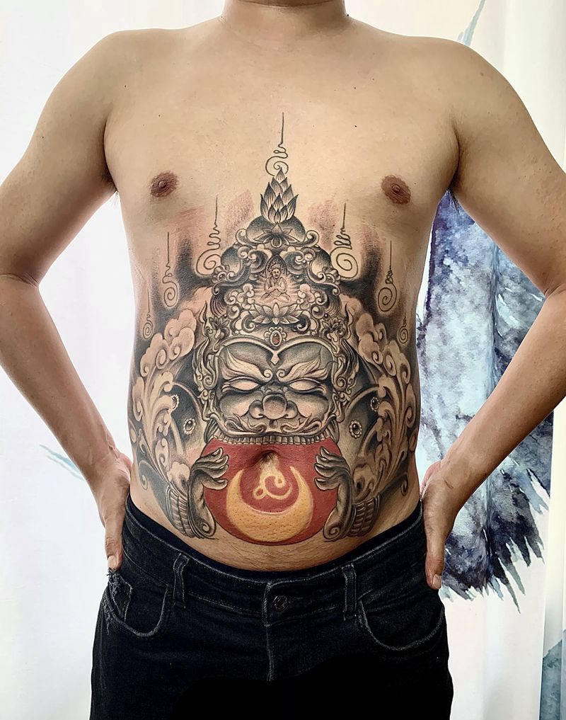 当前位置: 首页 >天津市纹身店-金刺青纹身图案>拉胡天神纹身图片_腹部新传统纹身图案