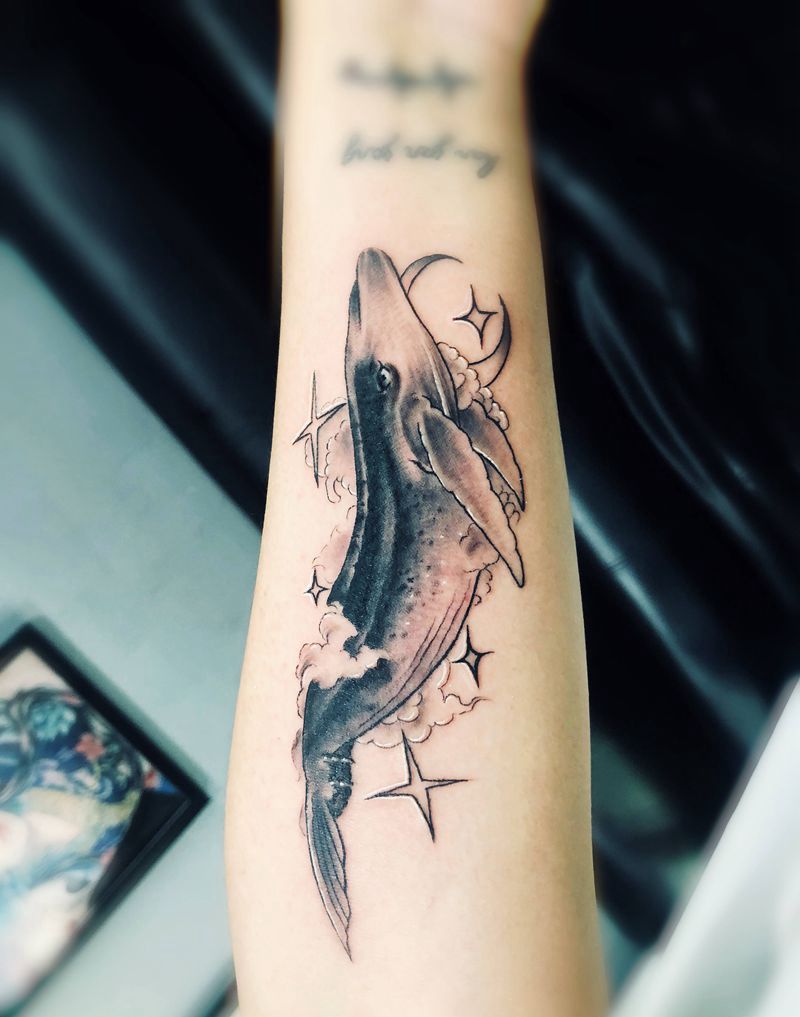 当前位置: 首页 >天津市纹身店-墨彩刺青纹身图案>鲸鱼纹身图片_手臂纹身图案