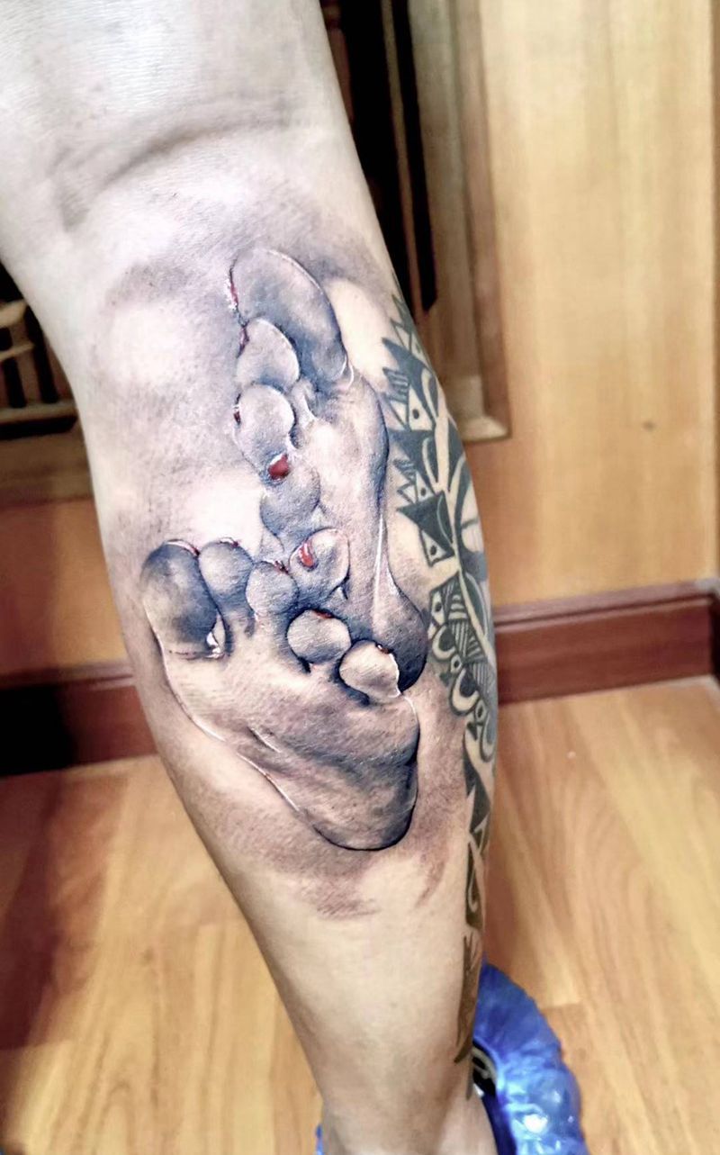 • T网红王老大花腿龙纹身图片_腿部新传统纹身图案