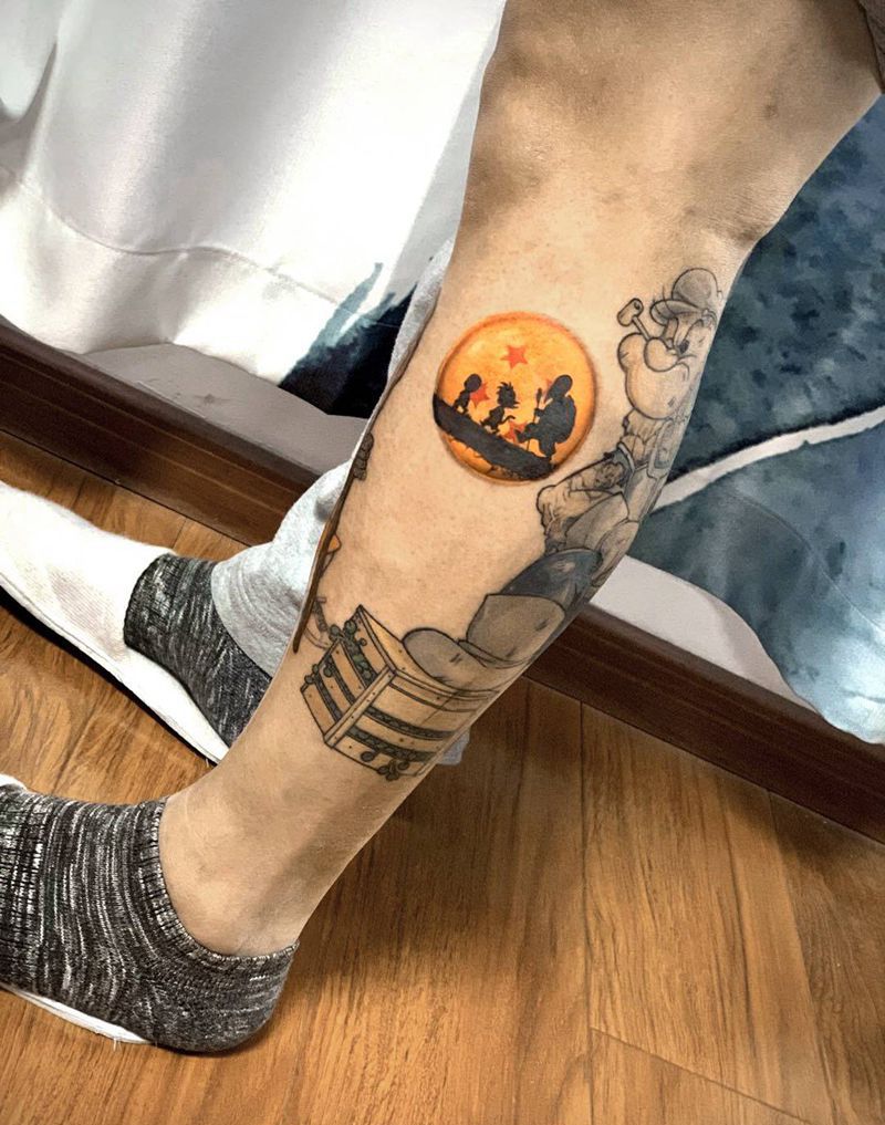 龙珠龟仙人孙悟空纹身图片_腿部欧美写实纹身图案