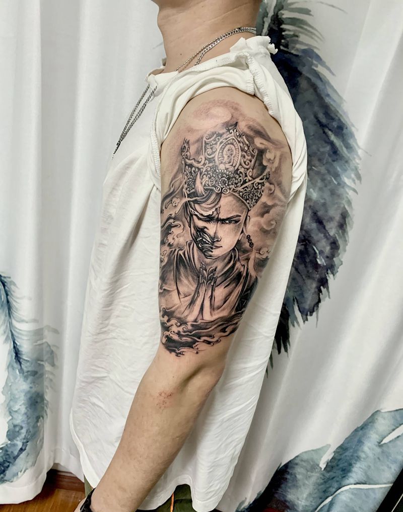 当前位置: 首页 >天津市纹身店-金刺青纹身图案>一念之间纹身图片_手臂新传统纹身图案