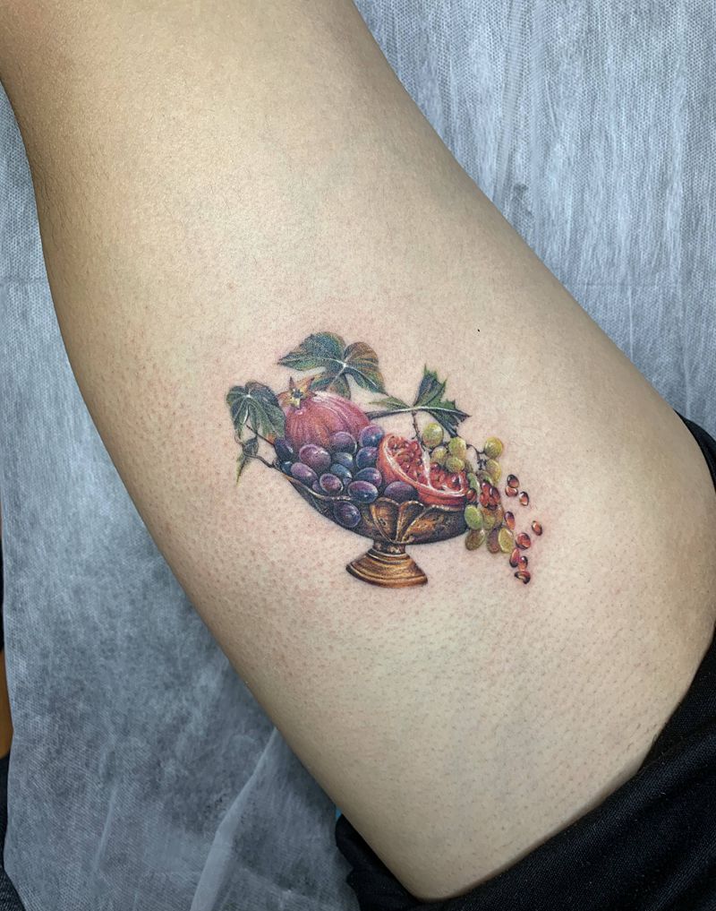 当前位置: 首页 >天津市纹身店-金刺青纹身图案>果盘纹身图片_腿部欧美写实纹身图案
