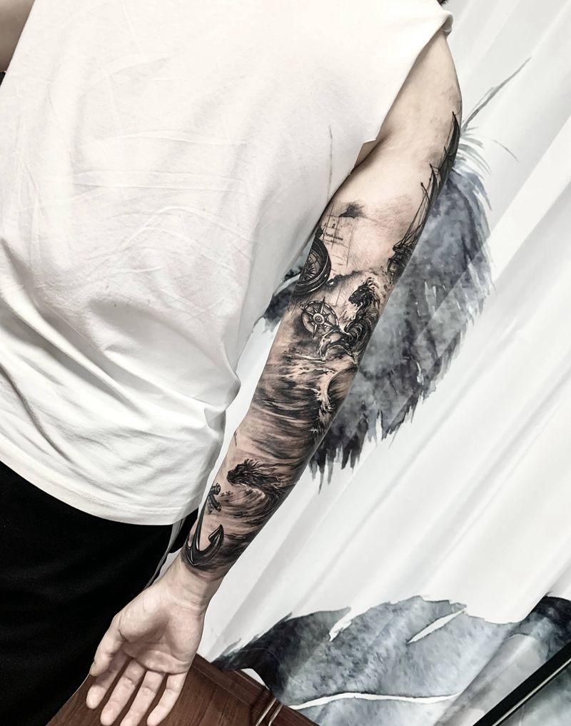 三天欧美的花臂 写实纹身图片_手臂欧美写实纹身图案