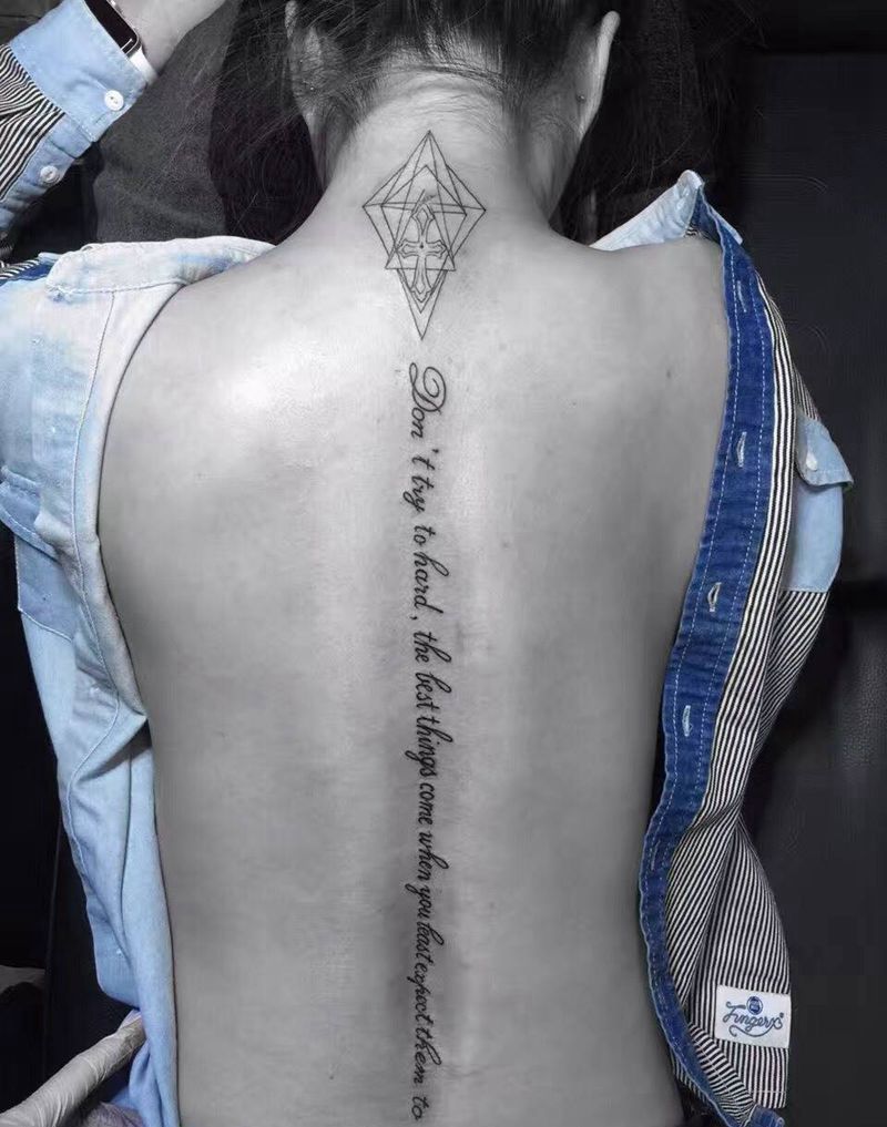 后背字母纹身图片_成品背部欧美清新字符几何纹身图案