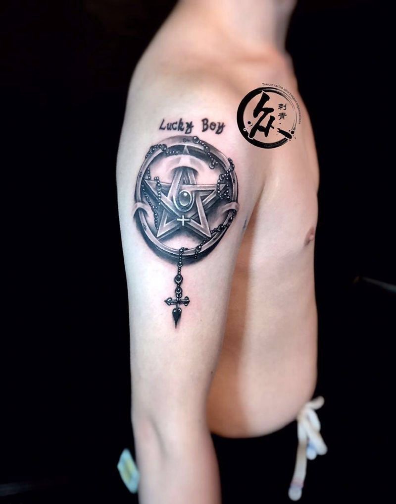 欧美五角星纹身图片_成品手臂欧美写实几何纹身图案