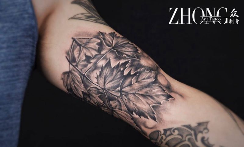 当前位置: 首页 >天津市纹身店-金刺青纹身图案>枫叶纹身图片_成品手部手臂欧美写实植物纹身图案