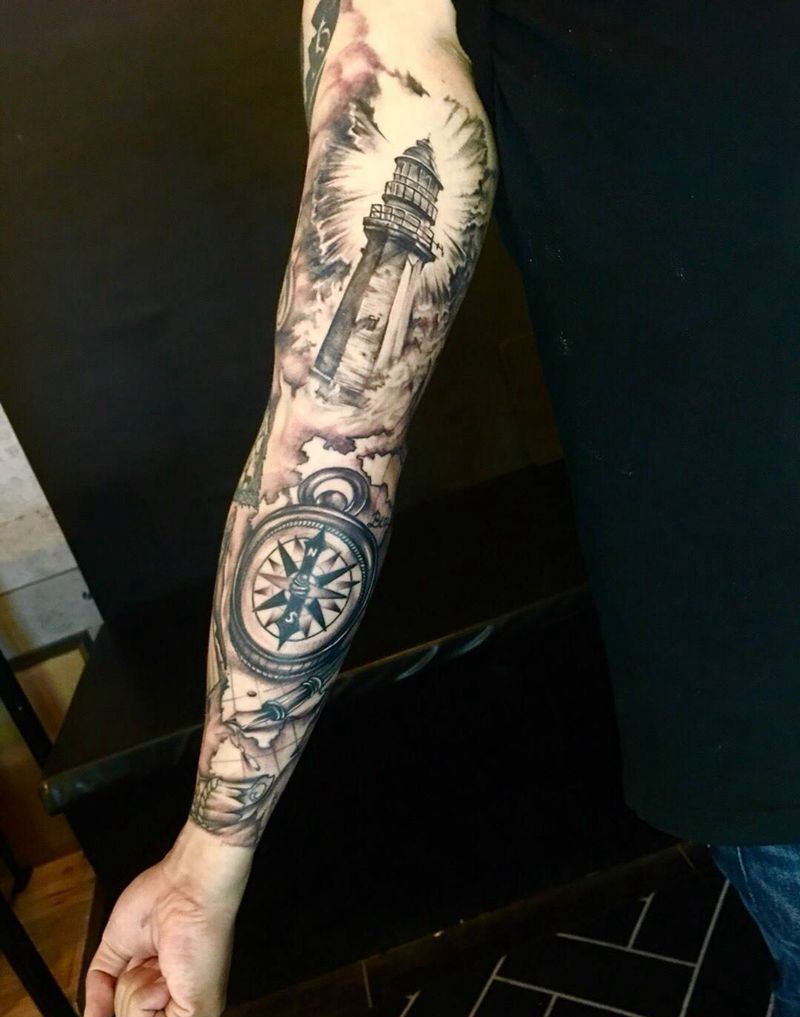 欧美黑灰花臂纹身图片_欧美原创成品手臂纹身图案