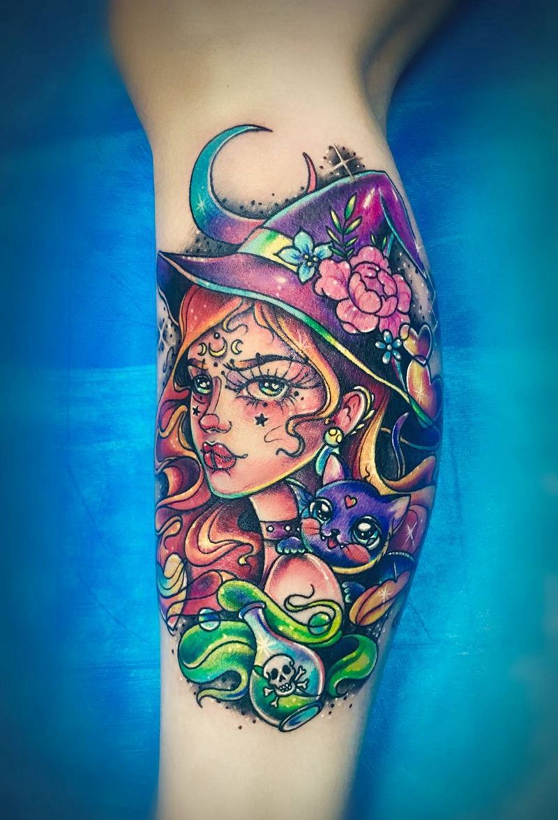 当前位置: 首页 >天津市纹身店-金刺青纹身图案>小清新女巫纹身图片_腿部New School纹身图案