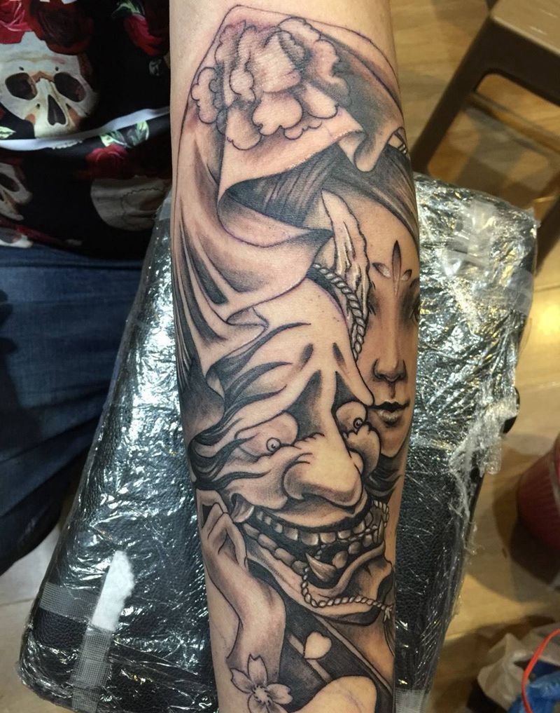当前位置: 首页 >天津市纹身店-金刺青纹身图案>小臂艺妓纹身图片_成品手臂手部传统欧美写实肖像人物纹身图案