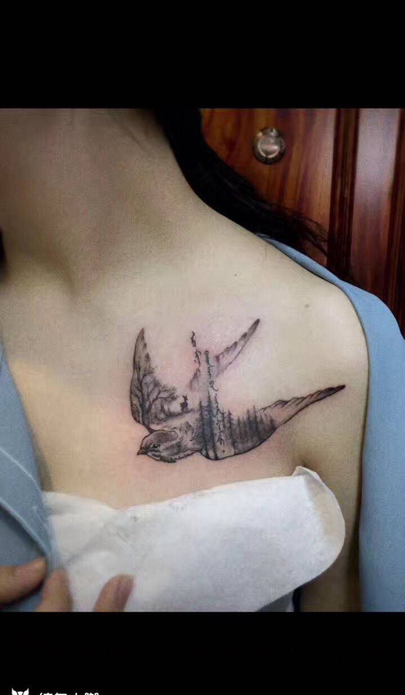 当前位置: 首页 >天津市纹身店-金刺青纹身图案>燕子纹身图片_成品颈部胸部欧美清新写实植物动物纹身图案
