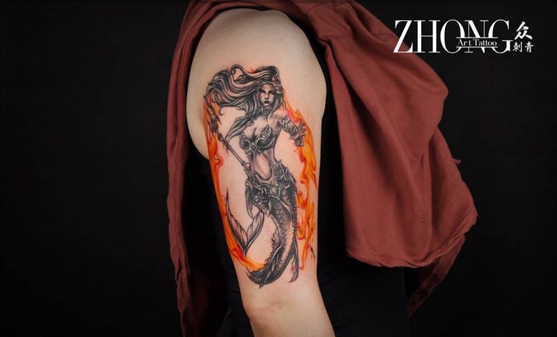 当前位置: 首页 >天津市纹身店-金刺青纹身图案>人鱼纹身图片_成品手臂欧美肖像写实人物纹身图案
