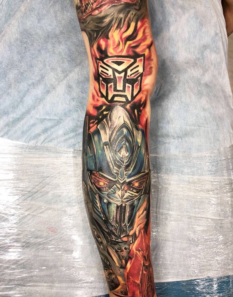 变形金刚纹身图片_腿部欧美写实纹身图案