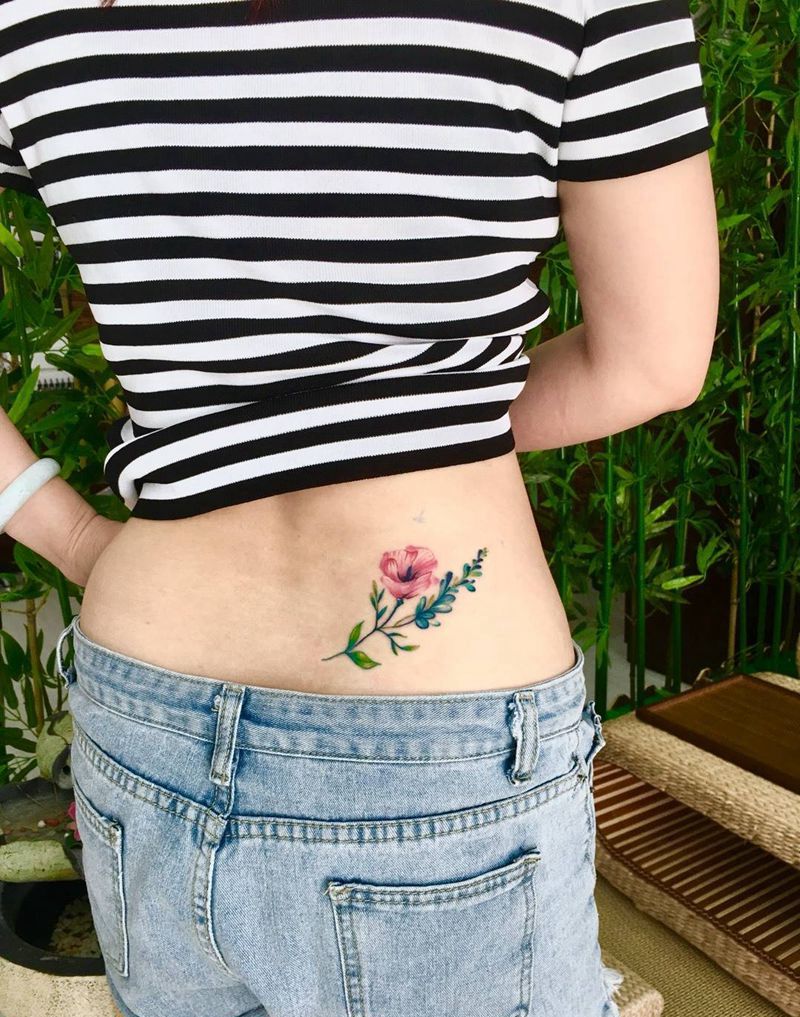 当前位置: 首页 >天津市纹身店-金刺青纹身图案>花纹身图片_成品腰部欧美清新写实植物纹身图案