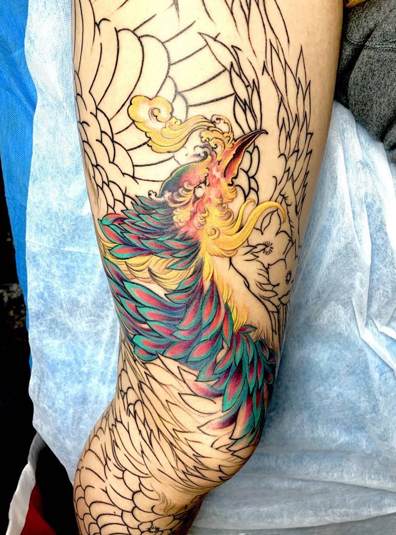 当前位置: 首页 >天津市纹身店-金刺青纹身图案>凤凰花腿局部纹身图片_腿部新传统纹身图案