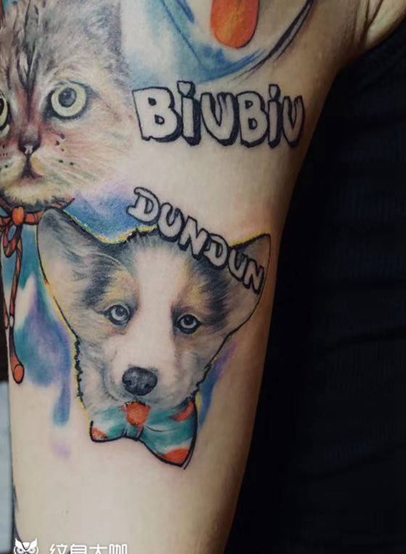 当前位置: 首页 >天津市纹身店-金刺青纹身图案>宠物肖像纹身图片_手臂欧美写实纹身图案