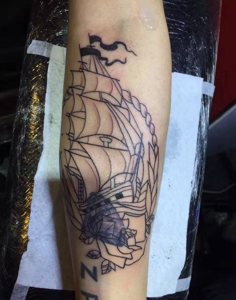 当前位置: 首页 >天津市纹身店-金刺青纹身图案>遮盖帆船纹身图片_手臂Old School纹身图案