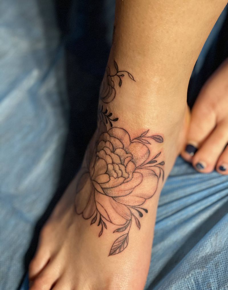 素花 遮盖轻微烫伤疤痕纹身图片_脚部素花纹身图案