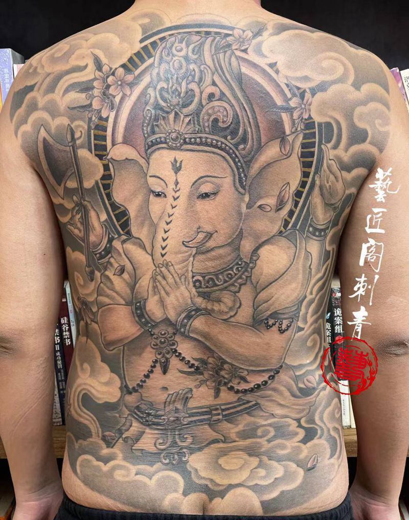当前位置: 首页 >天津市纹身店-兿匠阁刺青纹身图案>象神纹身图片_背部新传统纹身图案