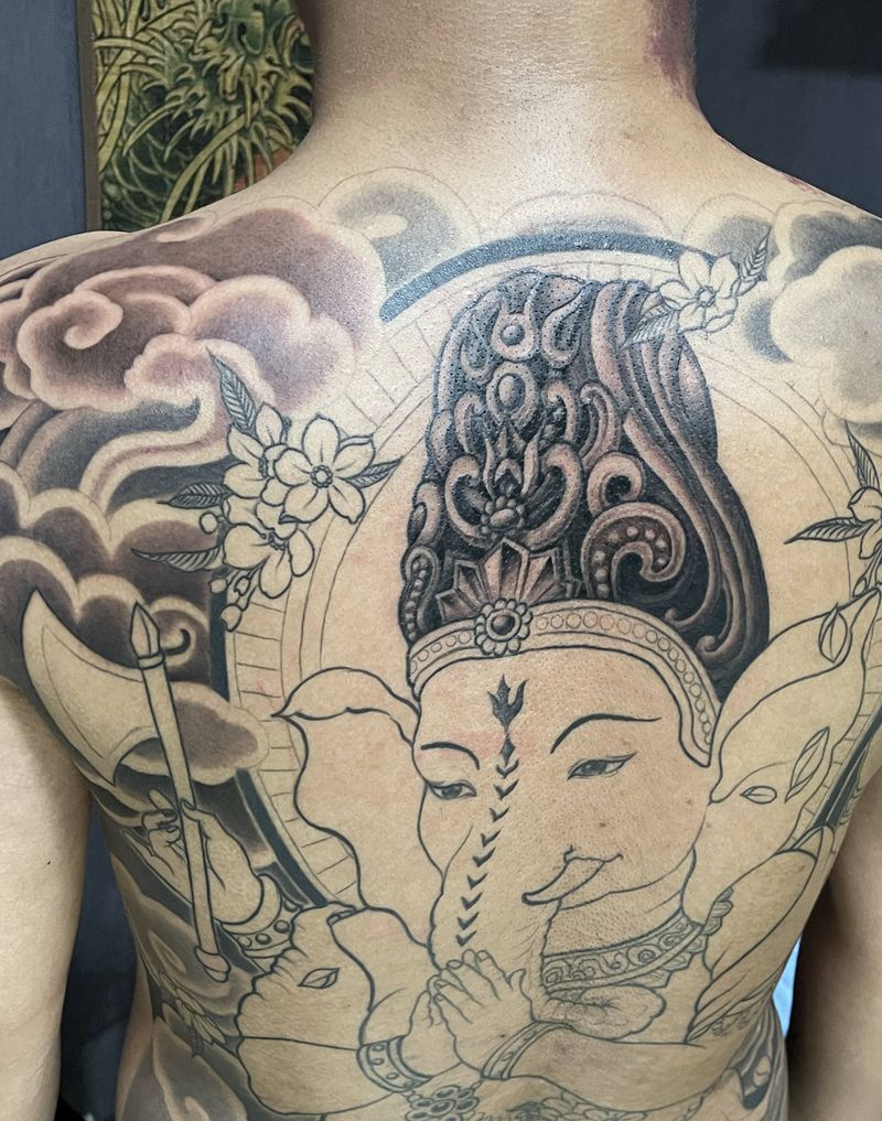 当前位置: 首页 >天津市纹身店-兿匠阁刺青纹身图案>象神未完成纹身图片_背部新传统纹身图案