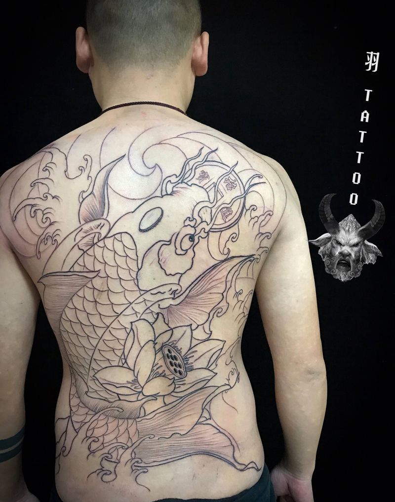 当前位置: 首页 >天津市纹身店-兿匠阁刺青纹身图案>招财鲤鱼割线纹身图片_