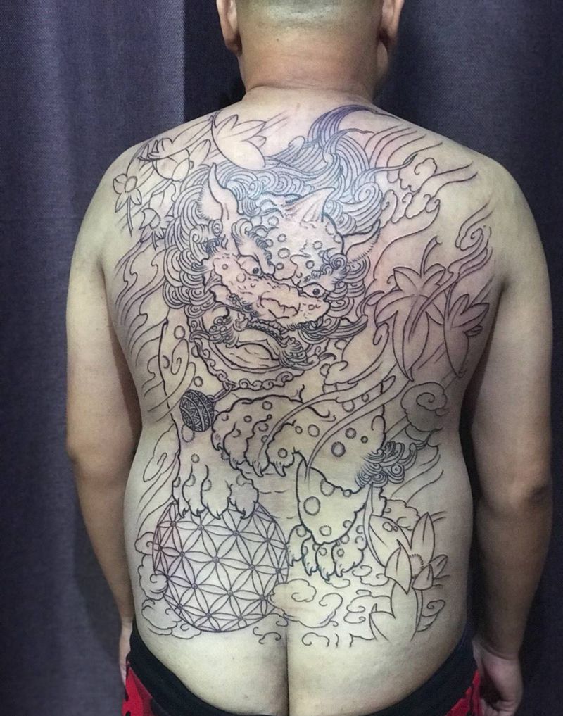 唐狮未完待续纹身图片_背部腿部老传统新传统纹身图案