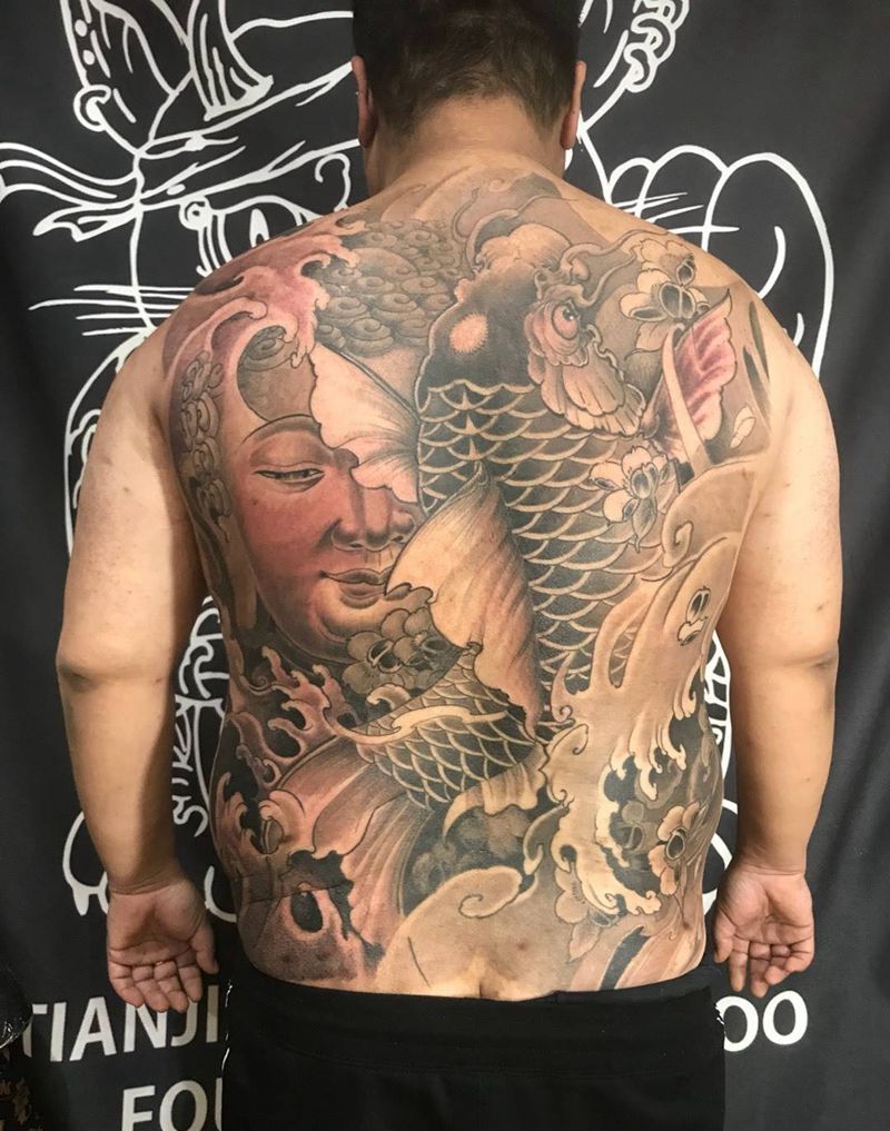 当前位置: 首页 >天津市纹身店-兿匠阁刺青纹身图案>佛与鱼纹身图片_