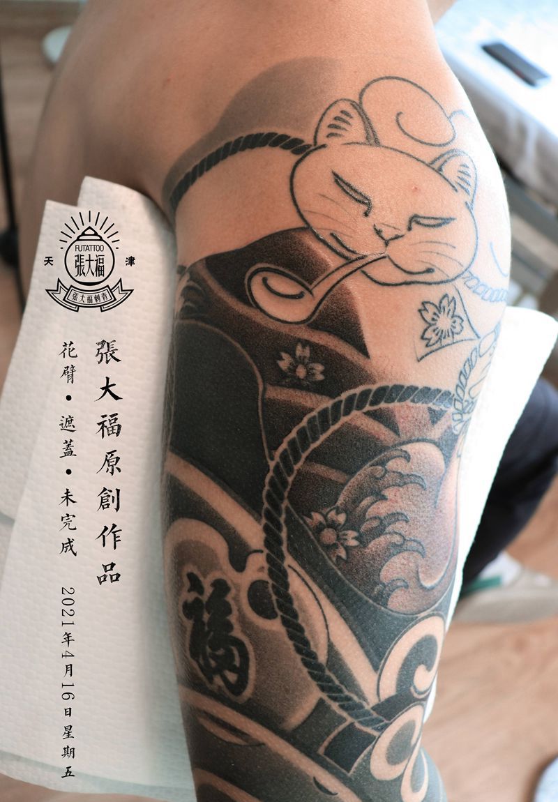 原创 花臂 遮盖纹身图片_手臂老传统花臂纹身猫遮盖纹身图案